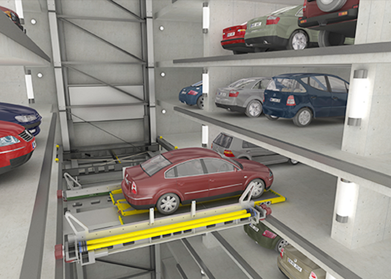 既具有塔式車(chē)庫(kù)存取車(chē)速度快的特點(diǎn),同時(shí)和塔式車(chē)庫(kù)相比又有造價(jià)經(jīng)濟(jì),車(chē)位數(shù)量多等特點(diǎn)